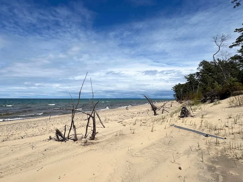 Ever wanted to live on the Biggest Great Lake? Now is your chance to own 350 feet of Lake Superior Shoreline with over 6 acres of beautiful rolling land with mature trees and privacy. Back the driveway you will find a 24x40 Pole Barn with a covered porch that is already set up with 200-amp electric, bathroom, kitchen area, on demand hot/cold water, well, septic, 30 amp RV hook up (inside & outside barn), Fiber Optic Internet and Phone. Enjoy sitting on the covered porch that leads out to the two bunk cabins. This retreat is ready to make it your own. Easy access to the beach for you to play in the surf, walk for miles, watch the sunrise and sunset, look for driftwood, rocks and/or build a sand castle. Shown by appointment only with Proof of Funds or Pre-Qualification Letter.