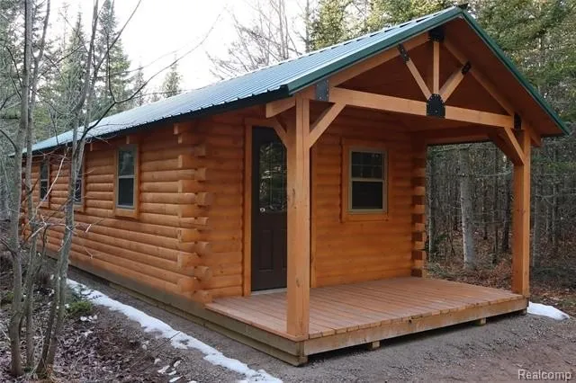 Remarkable 10-acre parcel that offers a unique opportunity for a Northern escape. This property borders the Federal Hiawatha National Forest, providing access to thousands of acres of state and federal land, perfect for endless Upper Peninsula adventures. The parcel includes a brand new 14'x36' full D-Log cabin that is ready for immediate use. The cabin is wired and features a new outhouse, a generator plug, a ceiling fan/light, and a private bedroom with brand new bunk bed set. The ceiling is insulated with foam board under finished pine tongue and groove, and the layout includes a main living/kitchen area in addition to the bedroom. The location offers excellent access to recreational activities: * Approximately 1 mile from groomed snowmobile and ATV trails. * 2 miles from Whitefish Bay, Lake Superior. * 6 miles southwest of Brimley, MI. For convenience, the property is: * 1 hour from Mackinaw City. * 30 minutes from Sault Ste. Marie. * Within 15 minutes of Brimley, Wild Bluff Golf Course, Brimley State Park, and the historic Point Iroquois Lighthouse. The area also boasts modern conveniences, with access to electricity, phone, DSL, and fiber optic internet. With year-round road access and stunning natural surroundings, this is an exceptional chance to own a piece of the Upper Peninsula's unmatched beauty. Please note that this property is agent-owned. Well and Septic permits will be needed for septic system hook-up and well water. Power and internet is at the road.