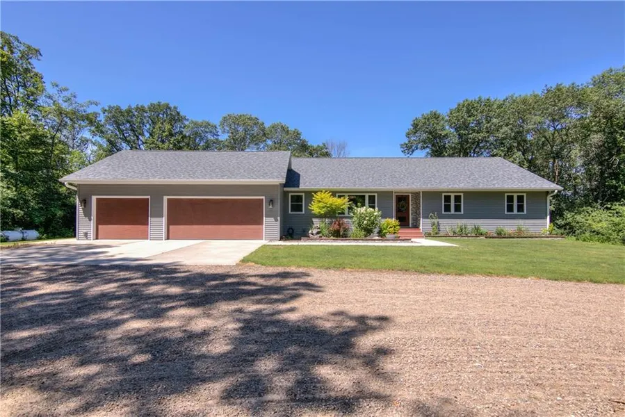 Northside custom home on 8.0 acres! Beautiful & stylish home with open-floor plan that offers luxurious amenities. Stunning kitchen with backsplash, island w/breakfast bar, stainless steel appliances, and lots of cabinet space. Your living area is graced with lots of natural light & a gorgeous stone fireplace that's sure to catch your eye. The bedrooms are spacious and the master suite is the ultimate retreat with his/her closets & a bathroom that features a tiled shower, large soaking tub, built-ins & a vanity. Basement is ready to be finished with studs, duct work, & electrical all in place. Outside is the ultimate oasis, w/a large wooden deck & brick patio all overlooking your backyard that's surrounded by lush trees. Just move in and enjoy! Property could be subdivided.