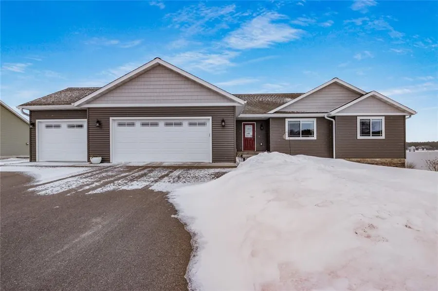This beautiful home has the convenience of main floor living with room to grow in the framed and wired lower level. Open concept main level has vaulted ceilings, bright and spacious living room, nice sized dining area with room for a buffet and 8 person table that leads out to a large backyard with a patio perfect for entertaining. The kitchen offers ample counter space, beautiful cabinets, pantry and breakfast bar. Master suite boasts a full bath with oversized walk in shower and walk in closet. Main floor laundry/mudroom conveniently located off garage. The lower level is framed for a family room, bathroom, storage area and an egress window is already in place to make a fourth bedroom or office. Enjoy your front landscaped yard looking out to a great and friendly neighborhood or relax in your private backyard pool. Great location between Eau Claire and Chippewa Falls with easy access to highways making an easy commute in either direction. Book your showing today!