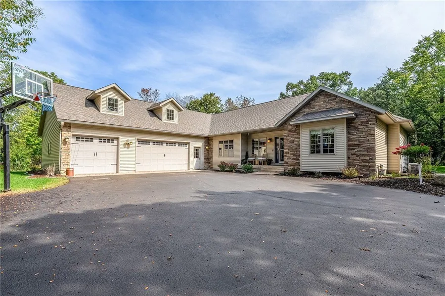 Impeccably maintained 5-bedroom, 3.5-bath ranch on 5 wooded acres within Wissota Woods! Quality-built by the original owner, the home showcases meticulous craftsmanship throughout. The main level offers 4 bedrooms, 2.5 baths, a spacious kitchen w/granite countertops, main-floor laundry, built-ins & custom cabinetry, large primary suite, living room w/fireplace, & an abundance of natural light. LL features a large rec room, family room w/fireplace, 5th bedroom, full bath, bonus room, & amble storage. Outside, enjoy updated landscaping, an inground sprinkler system, brick patio, fire pit area, & private trails within your own lot; perfect for entertaining or peaceful, private everyday living. A 3-car attached garage & turnkey condition make this home a rare opportunity in one of the area's most desirable areas - with one of the largest lots! Enjoy Wissota Woods amenities, including LAKE ac...
