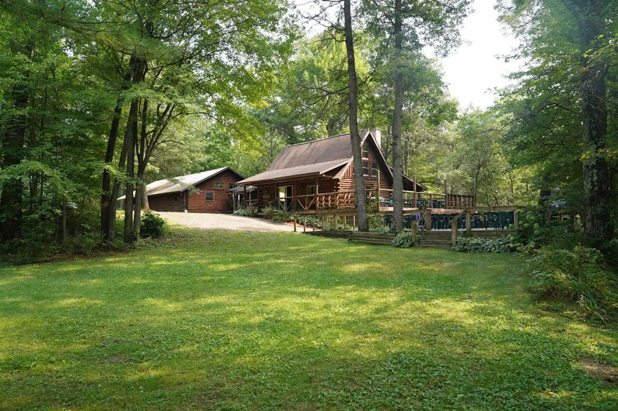 This property has been a long-standing wedding venue in the woods. It has been a great place to hold corporate retreats, retirement parties and anniversaries. There are some existing weddings on the books. If you’ve been looking for a wedding venue to operate and put your own special touch on it, now is the time to take to look at this one. There’s the wedding chapel deck area along with the reception area and outdoor seating. There’s a rustic log cabin bar connected to the reception area and a covered walkway in between. There’s a separate bathroom building along with a separate cook shack. A new extra-wide driveway was installed this year to make for easy access and plenty of parking. This wonderful place is looking for the next creative person to keep it going. It’s quite the place with additional acreage available! If you’re interested in a private tour, give me a call.