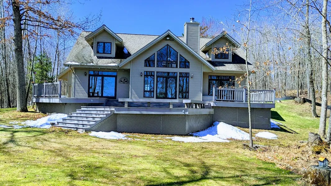 47.6 acre lakefront home on Chain Lake! This stunning property is an absolute SHOWSTOPPER! You get the best of both worlds with this one! Located on the shores of crystal clear Chain Lake consisting of over 1250 acres of water to roam sits this immaculate Lake Home where no detail was left behind. Homes captivating features include hardwood & tile flooring, custom cabinets, cambria countertops, high-end appliances, wood burning stove, Pella windows & more! Nearly every room in the house offers grand views of the lake with the most spectacular view coming from the wall of windows in the living room. This 5BR, 3bath home also includes a 25x65 heated attached garage with an extraordinary UP NORTH bonus room above! Add in the 36x72 insulated shed with nearly 48 total acres & over 380ft of frontage, this one is the rarest of rare finds! Hunt deer, turkey, bear, grouse, ducks, & geese on the b...