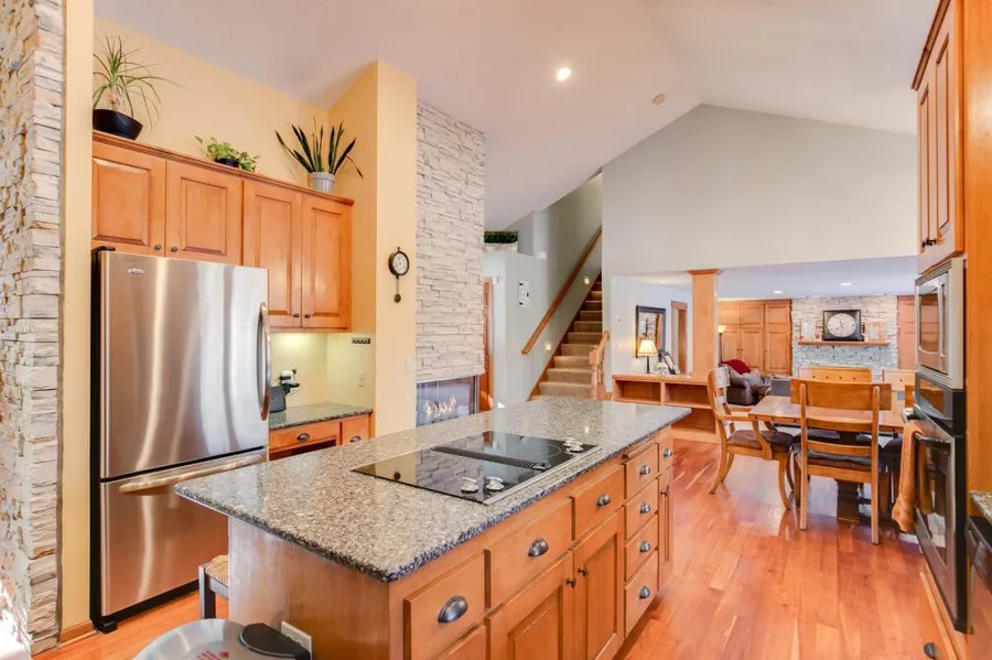 Beautiful home on a serene 1 acre lot! Spacious and open floor plan. Impressive vaulted ceilings with an amazing, floor to ceiling, 3 sided stone fireplace that greets you and your guests as you enter the foyer. Neutral paint, gleaming hardwood floors, main floor bedrooms, bathrooms, and family room make this floor plan unique and desirable to many. Generous Master Suite with private bath and walk in closet, additional full bath and 2 more bedrooms upstairs makes room for all. Lower level family room includes an egress window and a separate entrance to the garage. The additional space to spread out in the unfinished bonus room above the garage equals instant equity! This home is just waiting for you to make it your own.