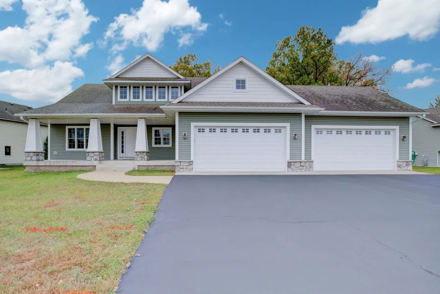 Impressive two story home featuring 6 bedrooms and 4 baths. Covered front porch for relaxing and awesome 4 car attached garage! Open and spacious floor plan featuring main floor owners suite and main floor laundry. The upper level has 3 bedrooms plus a nice open loft area. Flex room on the main level that could be an office or dining room. 2 additional large bedrooms in the basement with 3/4 bath and huge storage room. Fabulous floorplan for everyday living and entertaining. Recent updates include fresh paint and carpeting. Nicely wooded in rear yard. A home warranty is included! WELCOME HOME~