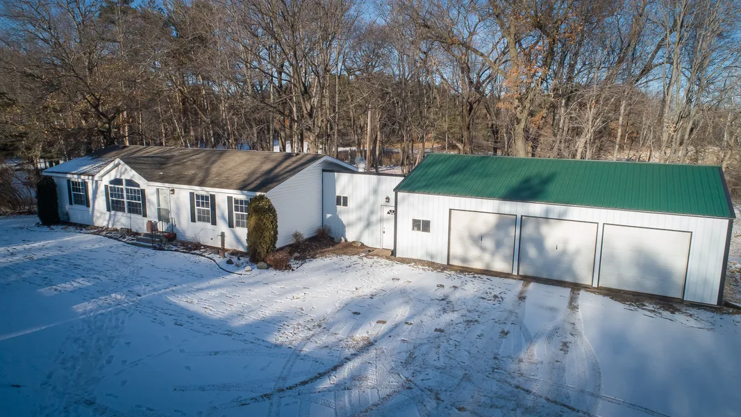 Nicely updated one level home on nearly 4 acres. 40x26 garage with breezeway. New laminate flooring & paint. Newer appliances and water heater. Detached garage w/workshop. Storage shed for lawn equipment. Easy access to the walking & biking trail to the East. Enjoy the quiet wooded backyard from the covered deck