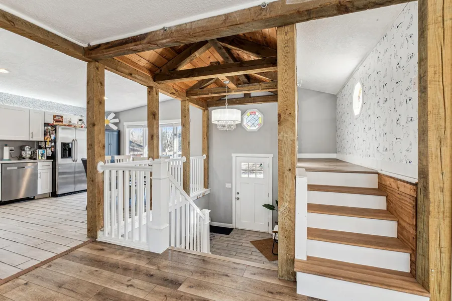 Peace and serenity surrounds this completely updated, year-round lakefront home on South Center Lake. Main floor open concept for today's lifestyle in mind. Fabulous 2 story open foyer with beams and tongue and groove detailing. 4 BR's, 2 updated BA's, gorgeous kitchen to include enameled cabinetry, SS appliances, granite counters and an undermount sink. Lower level walk out is complete with 3 bedrooms and a laundry room. Views for days from the 32x11 deck. Convenient shed with electrical close to the lake. 70 ft of shoreline with access to 835 acres and is fully recreational with great fishing and all-season activities. Connected to North Center Lake for 1600 acres of lake. When the water level is higher you can also connect to Lindstrom and Chisago Lakes making it potentially 3000 acres of lake to explore. Don't miss this great opportunity!