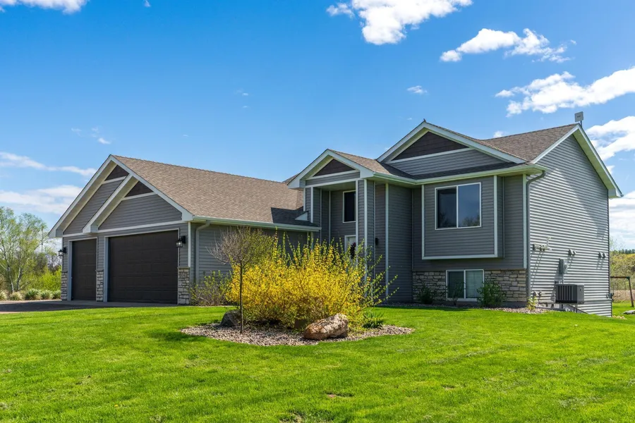This must see 4 BR/3BA property has everything for the outdoor lifestyle and hunting enthusiast! Sit on your large deck and enjoy the peace and quiet of the nature that surrounds you. This gorgeous, modern home is located on 56 acres of secluded property on a quiet street. Bi-level split with open floor plan, finished walkout basement, large deck, gorgeous modern kitchen. Pole barn with electricity 32'Wx48'Lx14'H. Diverse slough land that has high pheasant population and provides bedding area for deer. Large section of hardwoods and pine trees with stands that have yielded many trophy caliber game (turkey, deer, bear). Food plots established on tillable areas. Apple trees and fenced large garden plot. Property includes 1.5 acre pond. The property is surrounded by large tracks of private land and 600 acre wildlife management area. Part of North Branch school district but Chisago schools a...