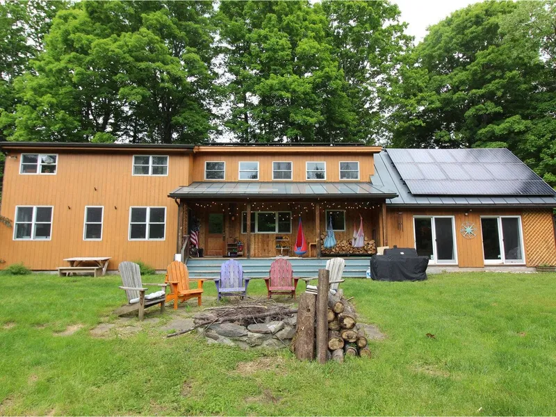 Enjoy the best of country living from this spacious and versatile 3-4-bedroom, 2.5-bath Contemporary set on over an acre in a serene natural setting. This lovely home showcases beautiful natural woodwork and a flexible floor plan ideal for entertaining or multi-generational living. Step into a warm foyer with built-ins, leading to a comfortable living room with vaulted ceiling, wood stove, and slider to a back deck. The chef’s kitchen features a butcher block island with seating, upgraded stainless appliances, and abundant storage, opening to a cozy dining area. The main level also offers a playroom, spacious rec room, bedroom, and laundry for added convenience. Upstairs, accessible by three different stairways, you\'ll find 2-3 more bedrooms, 2 baths, a bonus loft area, and private primary suite with 3 closets, 3/4 bath, soaking tub, and deck access - this space would also work well for guests or tenants. Outside, enjoy the peaceful yard with wildflowers, raised beds, a fire pit, in-ground pool, covered porch, treehouse, storage sheds, and owned solar panels. A true homesteader’s haven just minutes from the Audubon Center with hiking and swimming, mountain biking trails, and Huntington Village, plus just 30 minutes to Burlington.