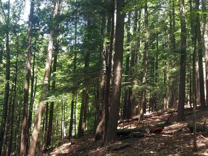 The forest resource is outstanding, featuring a mix of age classes, where many stems are 80+ years old. Stand density is overstocked with little understory growth, making walking easy. The majority of the timber is softwoods with white pine and hemlock the most common. Red oak, maple, birch, ash and hickory are common associates. Forest thinning can occur anytime, producing income for the new owner.