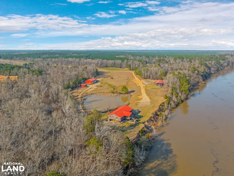 Experience waterfront luxury and adventure like no other with this exceptional property just a few miles east of Butler. Boasting 2.4 miles of Tombigbee River frontage, this rare turn-key property is perfect for entertaining family and friends or for a luxurious getaway. Relax in the custom-built main lodge with four bedrooms and four bathrooms including a master suite, with ample room for entertaining and storage below. The guest lodge also features four bedrooms and four bathrooms, and other amenities include an enclosed metal equipment shed, cab and air tractor with implements, game skinning shed, and dog kennel. With strategically placed food plots and feed/mineral stations, productive duck ponds and sloughs, and strict wildlife management in place, the hunting is fantastic for mature whitetails, turkey, wild hogs, waterfowl, doves, and other small game. The 35+/- acre fishing lake with a 3-bay boat dock that has been stocked and managed for world-class bass and bream fishing, as have the other two stocked ponds on the property. The timber is diverse, with merchantable pine plantations, various ages and species of natural regeneration hardwoods, and mature bottomland hardwood and cypress - perfect for wildlife habitats. The 30+/- acres of open land around the lake and leading to the lodges make a perfect dove field. Accessible via County Road 27, this property is just a short drive from Mobile, Birmingham, or Montgomery. An additional 1,000 acres may also available for lease at agreeable terms. Don't miss this rare opportunity to own a piece of waterfront paradise that has it all! Schedule your showing today.
