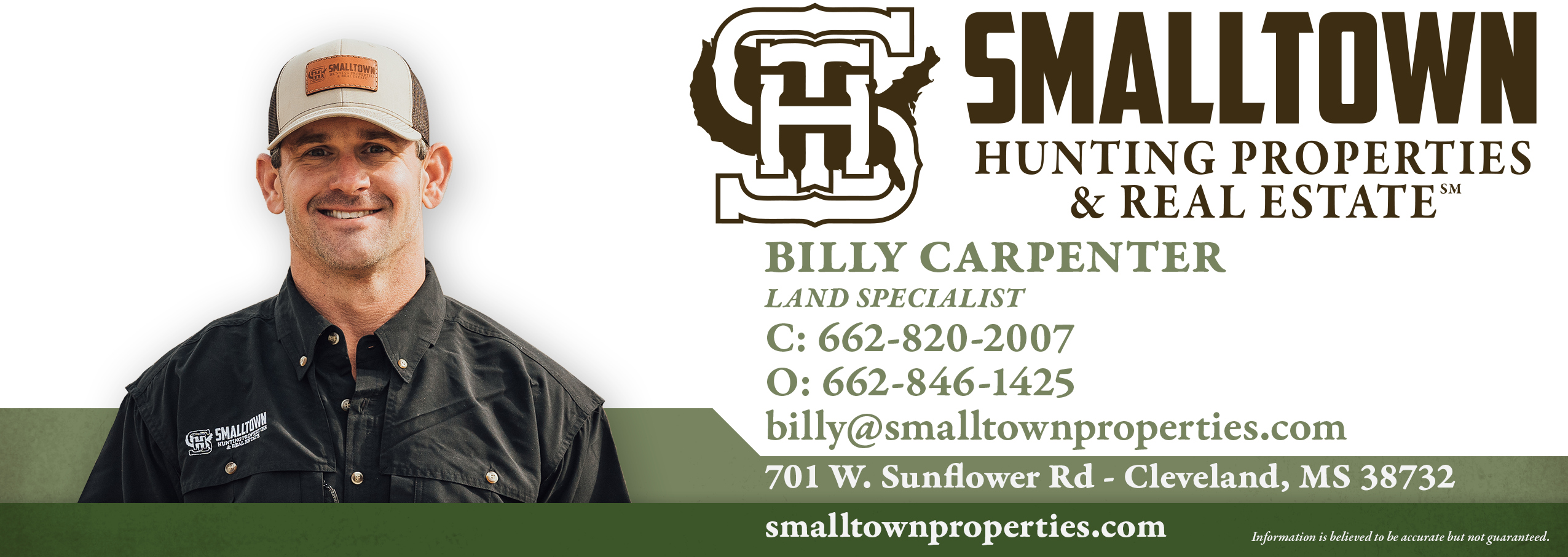 Research Parcel InformationBilly was born and raised in Leland, Mississippi where he found a great love for the outdoors. He spent most summers working on a rice and soybean farm. In 2008, Billy received a Bachelors degree in AgriBuiness from Mississippi State University. After graduation, he worked with the USDA Risk Management Agency for 6 years in Flowood, but always knew he wanted to return home. Billy has been servicing the Mississippi Delta since 2014 as a Crop Insurance agent. He also volunteers with the Cleveland Volunteer Fire Department, where he has been a member since 2018. Billy joined the SmallTown Hunting Properties & Real Estate family early in 2023.Billys passion for the outdoors, enthusiasm for helping others and his dedication makes a great fit to help you with your real estate needs.In his spare time, Billy and his wife Amber, along with their boys Wyatt, Luke and Case enjoy being outside hunting, fishing and playing baseball.