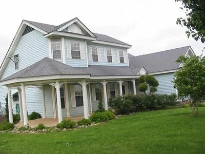 Spacious modern 2-story "Farm" house invites you to relax in style. Hardwood, ceramic tile and plush carpeting adorn the floors. Vaulted ceilings and the upstairs loft enhance the appeal of the den and casual eating area. The den and Florida room share a great double-sided fireplace. The kitchen is any cooks dream equiped with triple sink, garbage disposal, trash compactor, smooth surface counter top stove, built-in microwave and over stainless steel dishwasher and stainless steel Kenmore refrigerator. A walk-in pantry and tiled counter tops complete the stage for this kitchen that works! Adjacent to the kitchen is the formal dining room overlooking the large pond and the rolling front pasture through an attractive bay window. The formal living roo. adjoins this room and shares the same tranquil view. The master bedroom, master bath, 1/2 bath and office are also found on the 1st floor. The office is a work of art with it's built-in bookcases, sealed pebble flooring, a pitched ceiling with skylights, beautiful smooth finished T&G plank walls and ceiling. This room is accessed from the Florida room though a charming Dutch door or from the master bedroom through double french doors. Upstairs are 3 bedrooms, another full bath, a large storage closet and an area perfect for reading or meditating that overlooks the breakfast nook down below.
