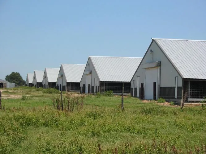 Six Tyson approved and contracted broiler (chicken) houses built in 2004 and upgraded to latest technology in 2010 to accomodate latest genetically enhanced 8# chickens. Each barn now raises 23,600 chicks yeilding 80,000 lbs more gain per barn than previously. Each broiler house is 43 X 500 ft and are climate controlled by fully automated Chore Time Computers and alarms. Contractor provides chicks, feed, delivery and pick-up.