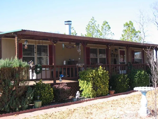 Tidy, well-cared for home with scenic views. 1997 Fleetwood manufactured home. Front 40 acres where home is located is cleared and has year round spring. Newly fenced east and south sides. Good well 92' deep with new pump installed November 2011. Back 80 acres has pond and is 70% cleared. Enough timber for shade and good hunting for deer, hogs and turkey. Open land yeild 80 large bales of Bermuda grass per cutting. Blue shipping container will remain.