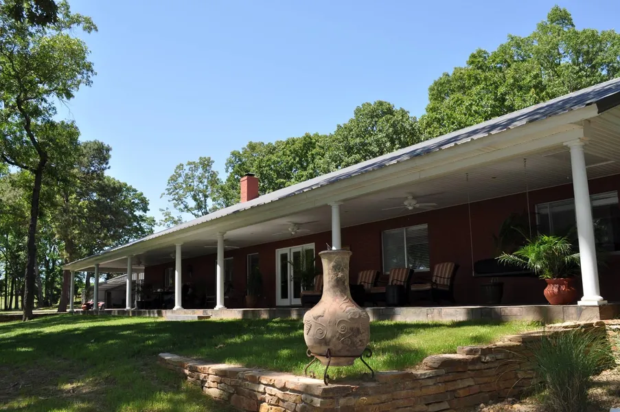 Words cannot describe the level of serenity that encompasses you as you drive the long, private, drive through an automatic gated entry to the secluded 3.11 acre retreat that awaits. Truly one-of-a-kind, this is a very rare opportunity to own the only house on the north side of Hugo Lake with access to the water. Joins Corps of Engineers property on all sides except one, providing access to 100's of acres of prime hunting just across the fence. Custom rock wall landscaping, a washed granite driveway, and cedar log rail fencing blend seamlessly into the natural landscape.