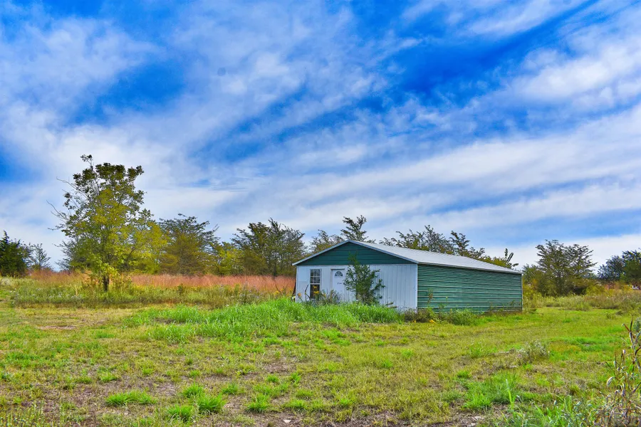Terrific little spot for a weekend getaway or on which to build a full-time residence in the Soper school district! Five manageable acres with a lovely spring-fed pond, building with partially-finished partial enclosure and open ended for equipment storage, carport, etc. Utilities on site! Gate at entrance to Property. This is a great opportunity to have a quiet, pretty place in a scenic area at an affordable price!
