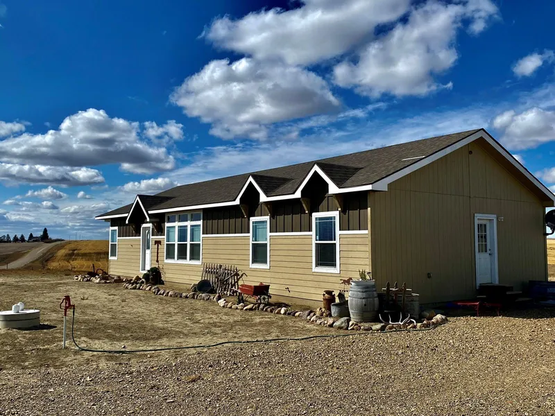 Welcome to the frontier dream property! A beautiful new, high end, 3 bed 2 full bath home positioned to take in the captivating views as far as the eye can see across the beautiful big sky state you will call home. The productive 320 acres of Golden Triangle soil will give you lots of growing options in the cultivated 138+/- acres. The balance is perfect for livestock of any kind and an undeveloped spring offers a great source of water for them. There is an ideal building site for a large shop or shed and the seller has already run electric and plumbing to this area. A well has a good start at 267ft but 4 1500-gallon cistern are in place for use until the well is completed. The detail in this new home puts it in a class all its own. A fireplace in the fabulous master bath