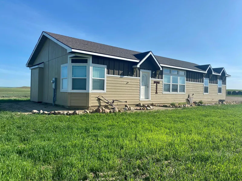 Welcome to the frontier dream property! A beautiful new, high end, 3 bed 2 full bath home positioned to take in the captivating views as far as the eye can see across the beautiful big sky state you will call home. The productive 320 acres of Golden Triangle soil will give you lots of growing options in the cultivated 138+/- acres. The balance is perfect for livestock of any kind, and an undeveloped spring offers a great source of water for them. There is an ideal building site for a large shop or shed and the seller has already run electric and plumbing to this area. A well has a good start at 267ft but 4 1500-gallon cistern is in place for use until the well is completed.