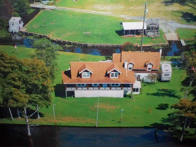 Very unique log home that includes a main living home that has 3 bedrooms and 3 full bathrooms and a separate apartment that has 2 bedrooms, living room, kitchen, and 1.5 bathrooms. This rare find offers Chowan Riverfrontage and canal front along the side of the property. The home has water on 3 sides! Between the apartment and main home area there are 4 garages.
