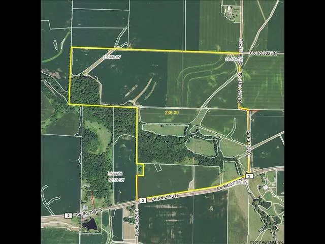 Christian County: Sec 32&35, T-16-N, R-1-W. Located 2 miles east of Mt Auburn and 25 minutes NE of Springfield. 236 acres: 156 acres of excellent tillable, 24 acres in hay can be converted into tillable. 56 acres timber with very good deer hunting. Easy access with roads on two sides of the farm. This is a prime tillable farm in an area which sells much higher. Take a look at this beautiful farm today!!! $1,900,000.