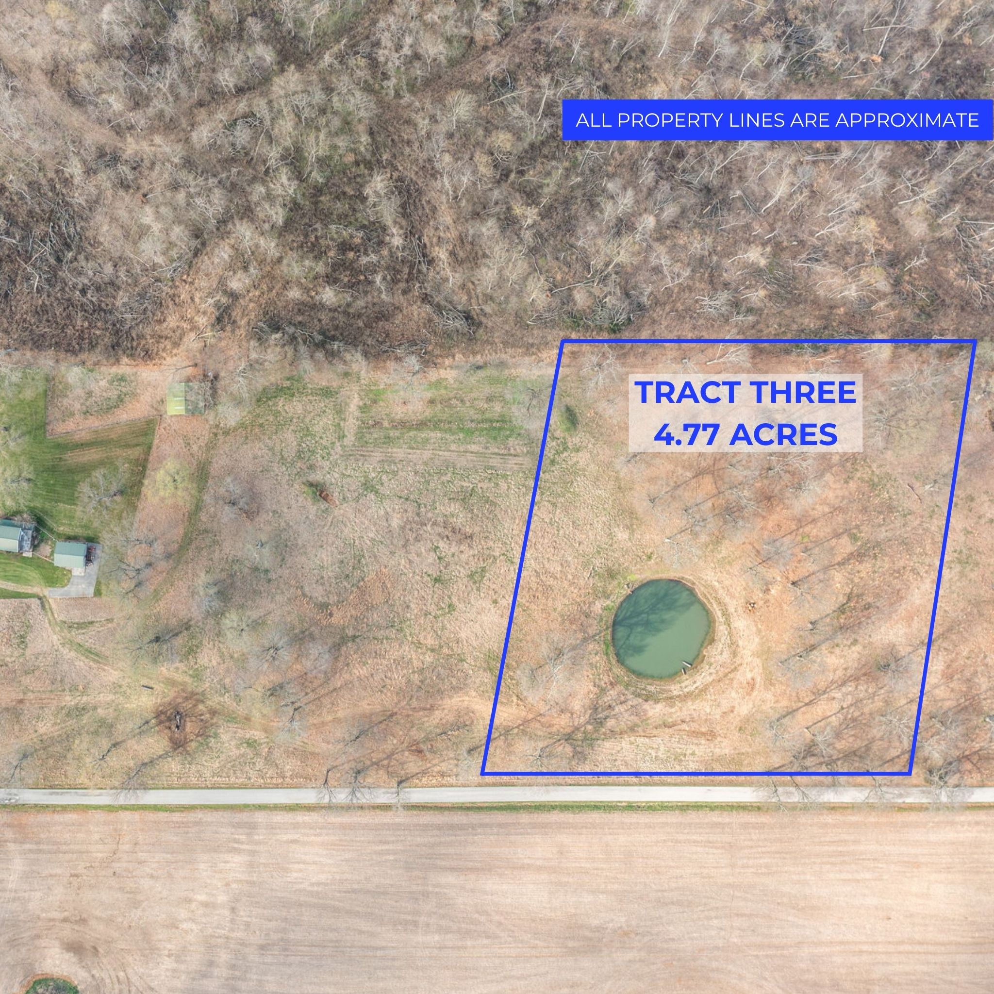 Tract 2: 4.77 acres with pond, ~450 ft road frontage
