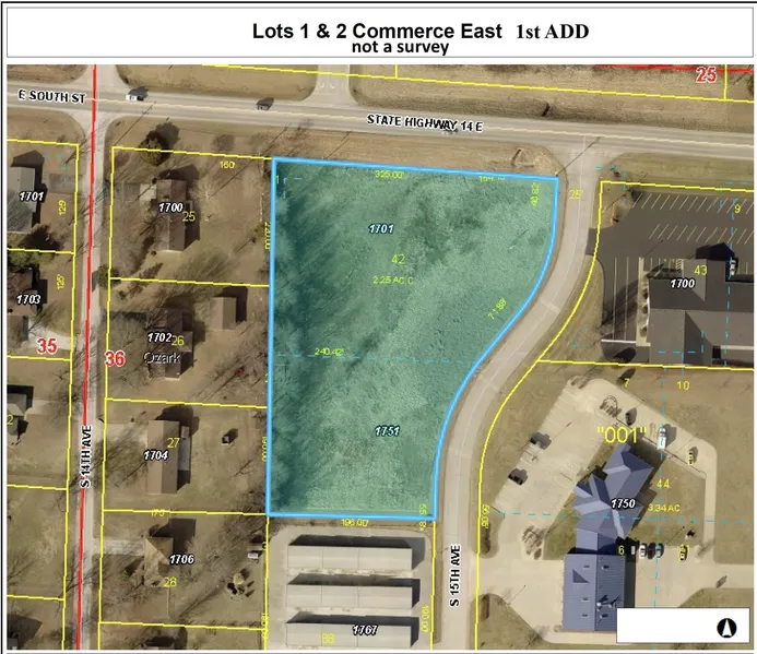 This price includes Lots 1 & 2 Commerce East 1st Add. Zoned C-2 Commercial which allows most all uses. Water, gas, electric & sewer available. Outstanding price for C-2 lots with all utilities just off busy State Highway 14 Ozark MO. The Parcel Number is for both lots as per the Christian County Assessor. Buyer & Buyer's Agent to do own due diligence as to any information and document needed. Information within the listing has been provided but is not guaranteed.