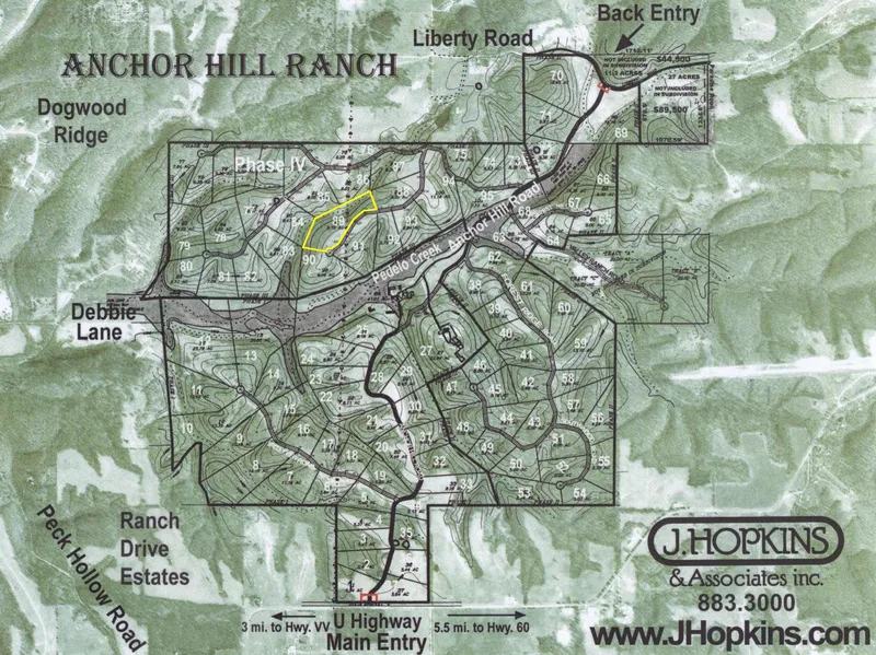 This lot is 9.19 acres in an area of nice homes with underground utilities. A walkout lot with large trees, on a quiet cul-de-sac. Only 20 minutes to 65 & 60 and 10 minutes to Rogersville. Anchor Hill Ranch has 95 walkout lots ranging from 5-20 acres. For more information on Anchor Hill Ranch, go to their website.