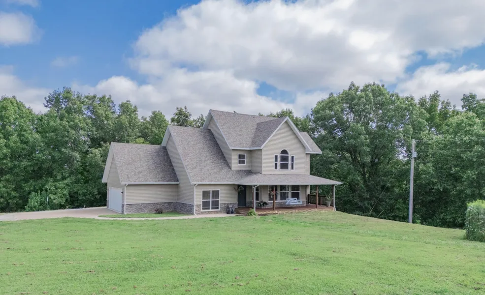 The ultimate Custom-Built Retreat. Nestled in the countryside of Christian County, Southwest Missouri, this expansive home offers an abundance of natural light and luxurious details throughout. The grand open living space, featuring tall ceilings and ample windows, seamlessly blends the living, dining, and kitchen areas. The custom cabinetry, concrete countertops, and stainless steel gas range oven make the kitchen a chef's delight. The main level boasts a spacious master suite complete with a walk-in shower, jetted jacuzzi soaking tub, and generous walk-in closet. Additionally, you will find a home office, mudroom, laundry room, and guest bath on this floor for added convenience. Venture upstairs to discover two additional bedrooms, a full bath, and an impressive balcony overlooking the living area and picturesque views of nature. The third story offers a versatile bonus room, perfect f...
