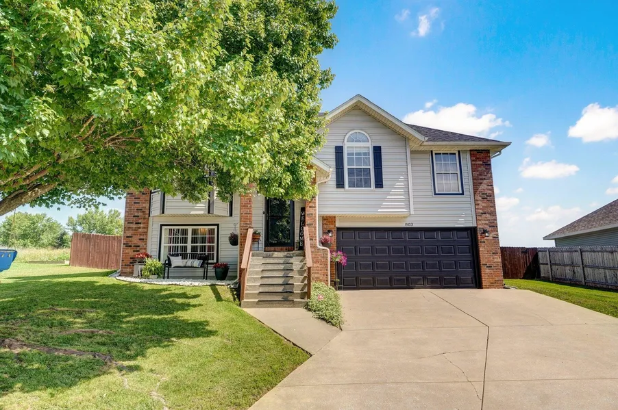 Welcome to this beautifully cared-for home situated in a peaceful and friendly Ozark neighborhood. The inviting foyer opens to a spacious living room filled with natural light pouring through large windows, highlighting the beautiful floors and neutral tones throughout. The living room offers a cozy fireplace and provides ample space for family gatherings. The heart of the home is the updated kitchen, featuring ample cabinetry, sleek countertops, and a convenient breakfast bar perfect for casual dining or entertaining guests. The cozy dining area comfortably seats family and friends, creating a seamless flow for meals and gatherings. This home offers four generously sized bedrooms, each with plenty of closet space and natural light. The primary bedroom is a true retreat with its own private ensuite bathroom, complete with modern fixtures and a walk-in shower. The additional bedrooms share a full bathroom, thoughtfully designed with updated finishes. Step outside to the fully fenced backyard--a perfect oasis for kids and pets to play safely or for hosting weekend barbecues on the large patio or a swimming party! The yard offers plenty of green space and mature landscaping, providing both privacy and charm. Whether you're relaxing inside or enjoying the outdoor space, this home offers a perfect blend of comfort and lifestyle. Schedule your tour today!