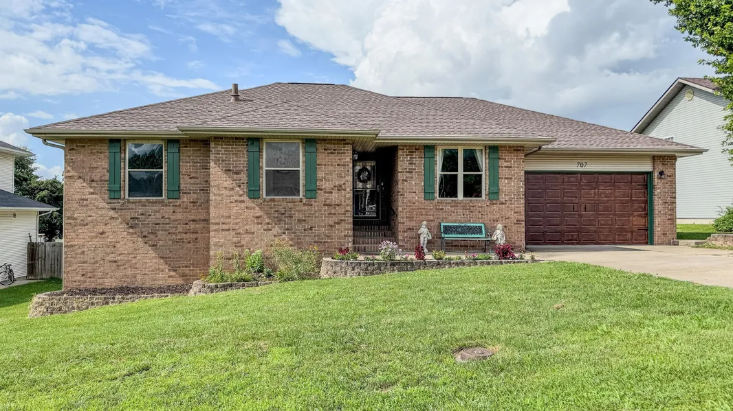 This charming, updated basement home in the heart of Ozark is a must-see! This 4-bedroom, 3-full bath home boasts two spacious living areas (one upstairs, one down) The master suite is located on the main floor along with a second bedroom and another full bath with a large linen closet. The kitchen has solid wood cabinets with built-in pantry and gas range. A formal dining room (currently used as office/library) is located just off the kitchen making for a great layout for family dinners! An adorable, cottage-inspired mudroom + laundry room (with ample storage) rounds out the main floor. The finished basement has two additional bedrooms (one non-conforming) plus a third full bathroom, multiple walk-in storage rooms, and access to a large John Deere room. The home has a covered deck and patio that overlooks a large, fenced back yard, which includes a storage shed and a delightful playhouse for the kids! And perhaps the best feature of all: the location! This home sits on a cul-de-sac street and is a short walk or bike ride to the library, Finley River Park, and the city pool. New HVAC was installed in 2022 along with new light fixtures, carpet, and paint on the main floor. A new roof was installed earlier this year with new vinyl siding being installed fall 2025.