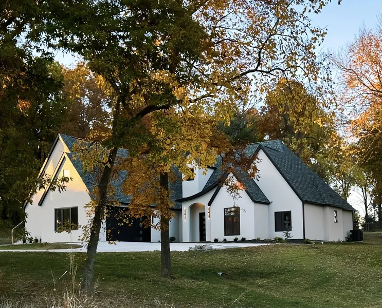 144 N Blue Jay Way, Nixa, Missouri Timeless beauty unfolds in this newly built 3,170 sq. ft. home where minimalist French-country design meets modern European sophistication. Located in the sought-after Briarbrook community across from Fremont Hills Golf Course, this architectural masterpiece is built with Insulated Concrete Forms and poured concrete to the roofline--offering unmatched strength, energy efficiency, and storm resistance. Inside, soaring 16-foot vaulted ceilings create a grand sense of openness over densified polished-concrete floors with radiant heat throughout. A 22-foot sliding glass wall fills the living area with natural light and opens to a covered patio with ceiling fans and outdoor TV wiring. A smart water-vapor fireplace provides a striking focal point for gatherings. The designer kitchen features flat-panel oak cabinetry, sintered-stone countertops, stainless-stee...