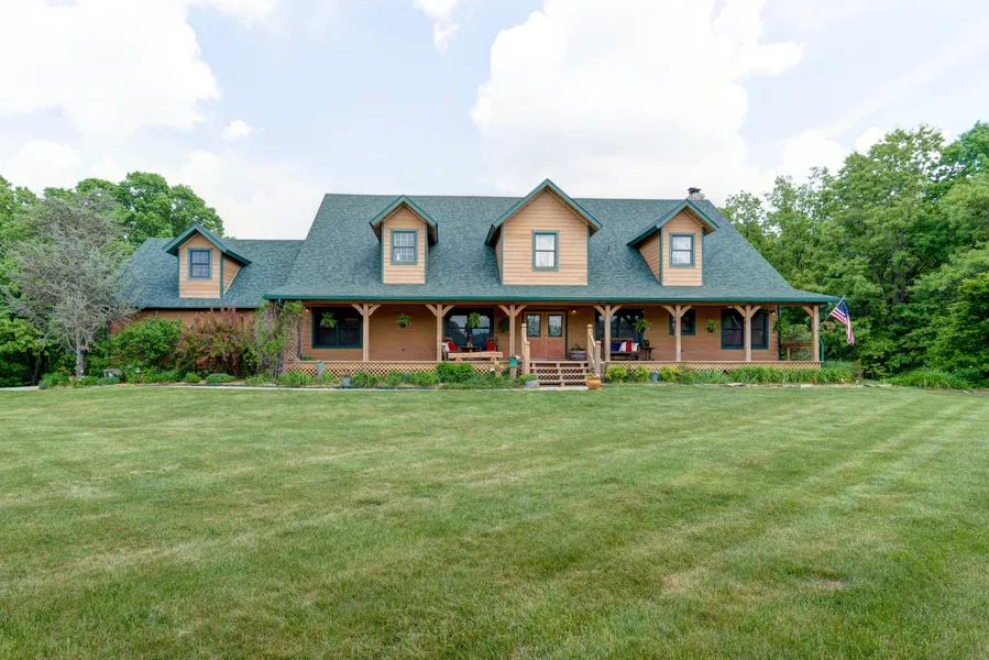 Welcome to the escape that is 215 Ranch Dr. in Rogersville, Missouri. The home was built by timber framer Danny Schwartz, an Amish craftsman who has become renowned for his work at Top of the Rock Resort and Golf Club owned by Bass Pros Johnny Morris. This exquisite home features Douglas fir trees imported from Oregon, a Cypress wood 66 long covered front porch, and cedar and pine wood accents throughout reminding one of being in a lodge rather than a home. This home would cost $225 per square foot to build in todays market particularly when 15.7 acres of pristine Ozarks land is included in the list price.