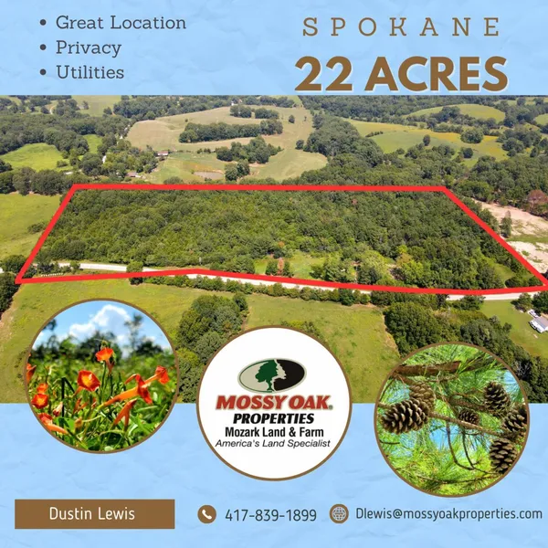 Great potential in a great location!! Just waiting for YOU to make it your own. If you like woods and privacy then this is it. Featuring some of the most gorgeous pines you'll see in this area, and they are found throughout all 22 acres. If you're local to the area then you know what a rare find they are. No HOA restrictions. Located in Spokane, you will be only 30 minutes to Springfield or Branson for dinner, entertainment, or shopping. On the property you'll find utilites and a well already in place. Come check it out!