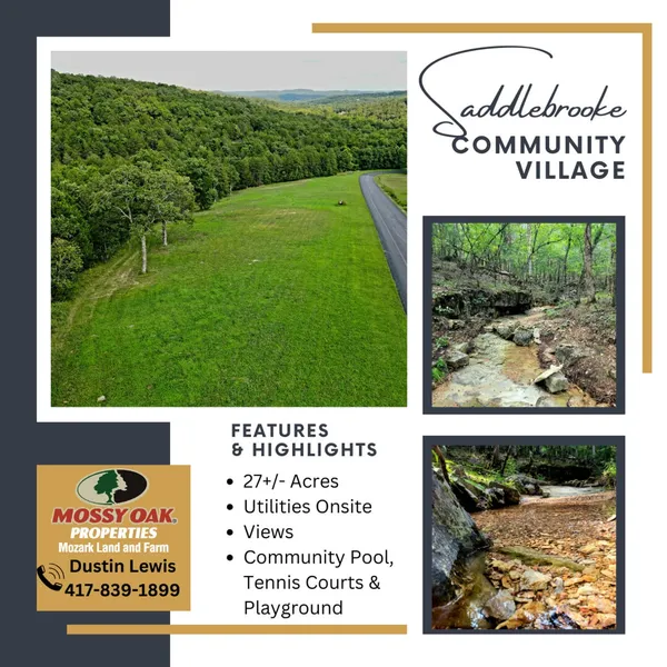 Welcome to the Village of Saddlebrooke. With over 2,500 acres of beautiful hilltops, stunning valleys and crystal-clear creeks, this is a community that stands above the rest. Here is your opportunity to own some captivating acreage that rarely becomes available within this community. With Cook Hollow as your view, you are ensured to have stunning views that will never fade. With most of the properties being around an acre in size, this property encompasses just under 28 beautiful acres to build your dream home on. With electric and water already on the property, you are ready to get started. To add to the elegance of this community they also have great amenities including a community building with meeting rooms, swimming pool, basketball and tennis/pickleball courts, and a pavilion at the park to enjoy family gatherings by the grill and creek. Within this community mother nature is on full display. Whether bow hunting is your forte or just something you enjoy doing every once in a while, you are allowed to do so on this property when season starts. There are deer aplenty! Come check this highly sought-after area, you won't be disappointed. Conveniently located with quick access to Highway 65 and about 10 minutes to restaurants and shopping at the Branson Landing, you are sure to always have something to do when friends and family visit.