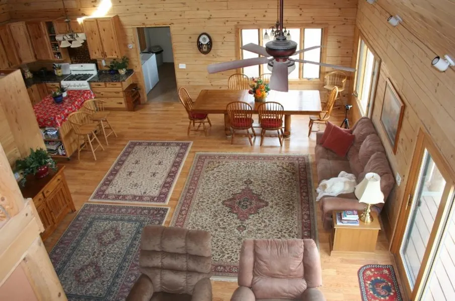 Upon entering the home you'll find the spacious great room with its cozy freestanding propane stove, vaulted ceiling and open floor plan to kitchen and dining area. Wonderful for entertaining company in a lodge style setting. The kitchen includes a large free standing center island on wheels, plenty of beautiful custom oak cabinets, a gas range, refrigerator, microwave oven, and dishwasher. There is a half bath for your guests just of the great room. Located just off the kitchen is a large laundry/mud room equipped with a ...