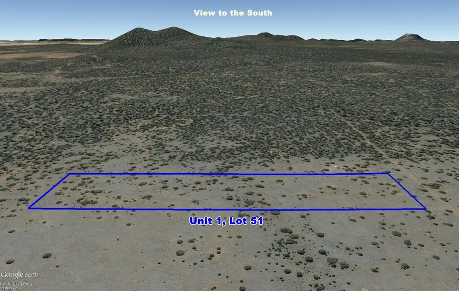 Lot 51 has frontage along Camino Del Tesoro Road, which comes right off of Camino Del Desierto, the main road through Unit 1. The property is located in the southeastern part of Unit 1 and its terrain is very lightly rolling. Power lines are about 0.72 mile away.