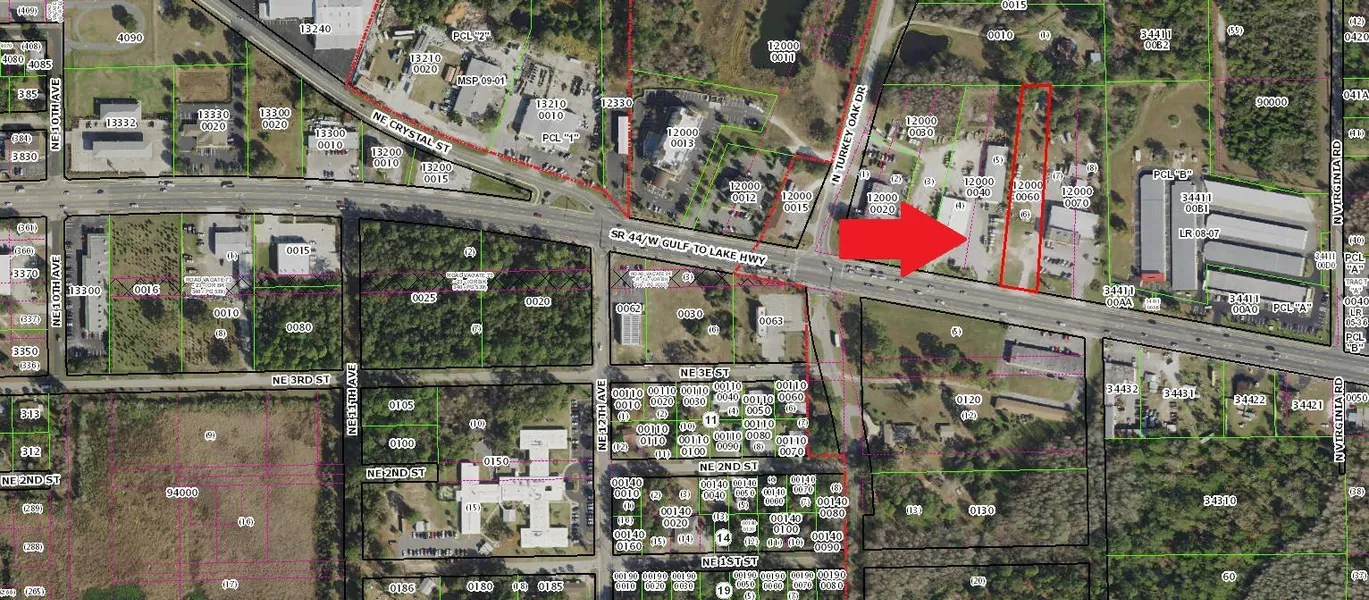 High & Dry, 1.14 Acres, Zoned GNC & MDR; Commercial lot directly on busy hwy 44(Gulf to Lakes), Just outside city limits of Crystal River Central water & sewer, Bay Area & Taylor Rental paid $21,000 to install lift station & sewer pipes under Hwy 44, Bay Area's west entrance is on this lot, Need buyer & Seller agreement for ingress/egress; Lift station in front of Taylor Rental(True Value), Will sell 1/3 cost of sewer at closing for $7,000; Bay Area will remove fencing & trucks on business property; Approx. 100 ft at rear of property is zone MDR; Lot Dimensions = 102X544X76X560; Rear part of lot currently being used by Bay Area Air Conditioning,