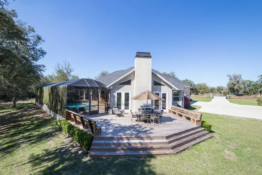Classic elegance is the theme in this luxurious modern French country style home! From the spectacular entry hall and elegant living & dining room to the amazing gourmet kitchen with Thermador appliances, the family room with cathedral wood ceiling and towering stone fireplace to gorgeous bathrooms, every attention to detail has been included in this show place! Walk out to the covered patio and embrace the landscaping featuring several entertainment areas around the pool with waterfall and separate spa! Step out to the deck and enjoy beautiful sunsets in a very private setting. The second garage houses 6 cars, office, workshop and an upstairs apartment/entertainment room. As the old saying goes: a picture tells more than a thousand words, please be invited to explore this magnificent country estate yourself!