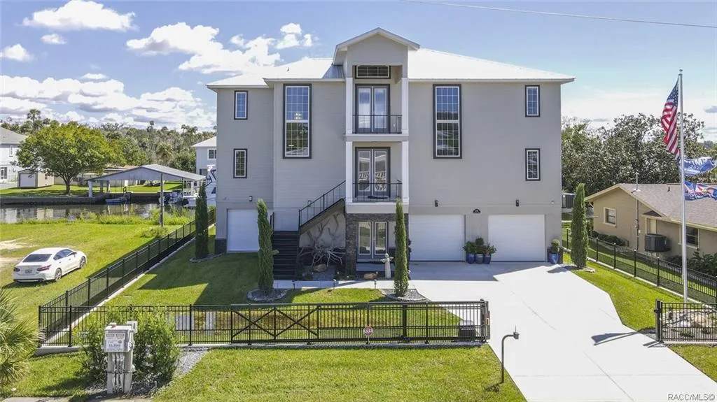 STUNNING CONTEMPORARY WATERFRONT 3 STORY CUSTOM BUILT HOME in 2019. 2 family residence or in-law suite. 29 pilings to bedrock, Generac for entire 3,824 sq ft, elevator, theater, 2 fabulous kitchens, 2 laundry rooms, 8" plank oak flooring, 3 porches w/travertine marble, steam shower in master, all bedrooms en-suites, 80' Trex dock, wet bar, covered boat house w/lift, custom gated entry, by appointment only.