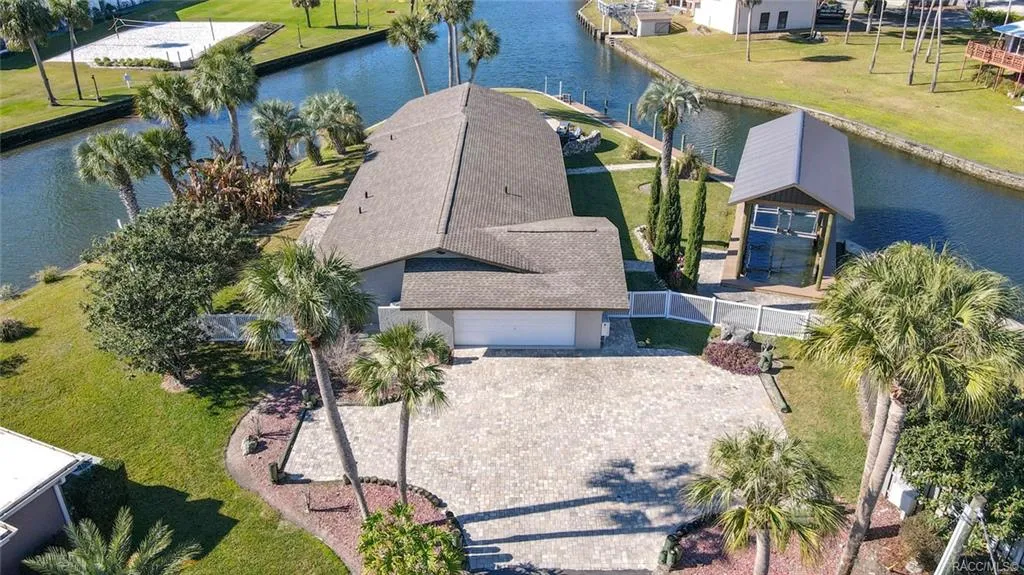 Spectacular waterfront peninsula with expansive waterfront views close to the King Springs in Crystal River! Over 285 ft of seawall, cut-in covered boat house 14' tall with metal roof and 12,000 pound lift plus a 76 ft Trex dock. Custom infinity pool & jacuzzi with fabulous western sunsets. Totally upgraded 3/3 home, en-suite bathrooms, cathedral ceilings, gorgeous kitchen with beige wood cabinets & granite everywhere. Stainless steel appliances, plank ceramic tile, distressed wood look, throughout home. This showplace comes totally furnished. City water & sewer but county taxes - A MUST SEE!