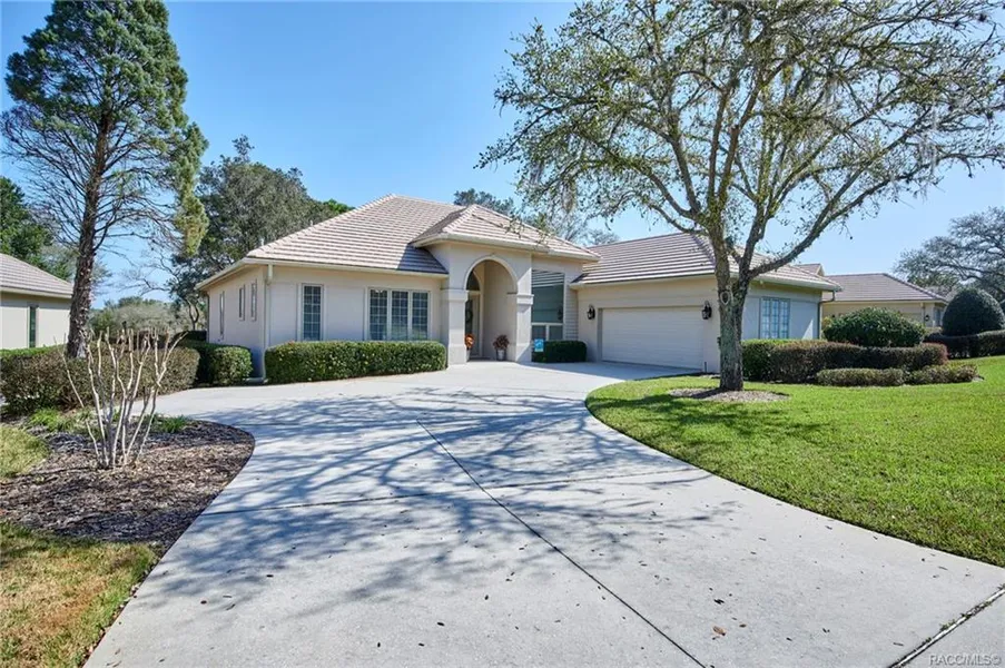 Look no further, come and see your next home. When you walk into the front door you will feel welcomed by the high vaulted ceilings and open floorplan. This is the ideal floorplan with either 3 bedrooms and a den or 4 bedrooms and 3 bathrooms. The warmth of the wood floors draw you into the living room where you can see the lanai and golf course at the back. The large open kitchen is great for entertaining or enjoying family time. Enjoy Florida living on the spacious lanai overlooking the 9th hole of the Ranch Course. Some of the upgrades include: New light fixtures outside, living and dining areas, new carpet in bedrooms, interior paint, HVAC in 2020, hot water heater in 2021. The 2 car garage also has a separate golf cart garage.