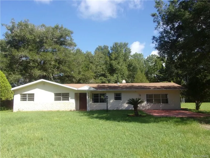 INVERNESS HIGHLAND ACREAGE - Enter 2.41 park like acres through wrought iron gates onto blacktop drive to 4 bedroom 2 bath home. Open floor plan with fireplace an beamed ceilings. Eat in kitchen. Cermaic tile flooring throughout including screened porch. Freshly painted with new light fixtures and ceiling fans. 37' X 24' detached garage includes workshop/ storage area. 14' X 40' RV carport. New drainfield installed April 2019. New A/C July 2016. Roof 2004. A variety of trees with plenty of Shade. Room for pool, tennis courts, gardens.