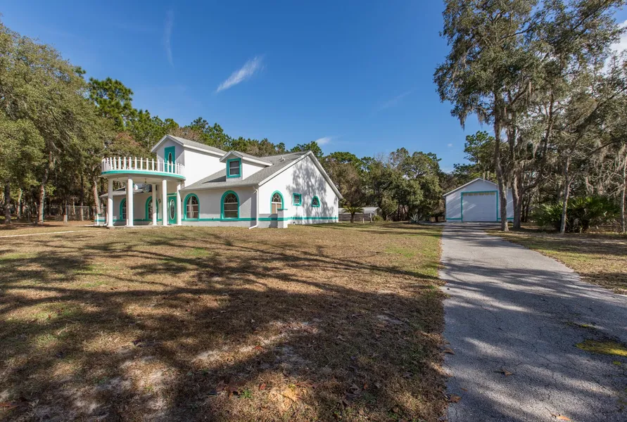 SPACIOUS 3 BEDROOM 3 BATHROOM WITH HUGE DETACHED GARAGE, SITTING ON 1 ACRE (APPROXIMATELY) OF LAND IN BEAUTIFUL KENSINGTON ESTATES!!! Loads of potential in this charming home in one of the hidden gem neighborhoods of the Nature Coast. The home features the popular split floor plan with the Master Suite on one side of the home and the guest rooms on the other, ensuring privacy. Master Suite boasts a giant walk in closet and large master bathroom with an oversized jetted tub. Two good sized bedrooms just across on the other side of the home, with a sharp kitchen and living area nestled right in the middle. Sitting at roughly 1820 sqft of living area (2120 sqft if you include the sprawling enclosed porch) and 2300 sqft (Approx.). under roof, this home has plenty of room for it all. Kitchen is a great size, big enough to get the job done without being overwhelming. Plenty of counter space an...
