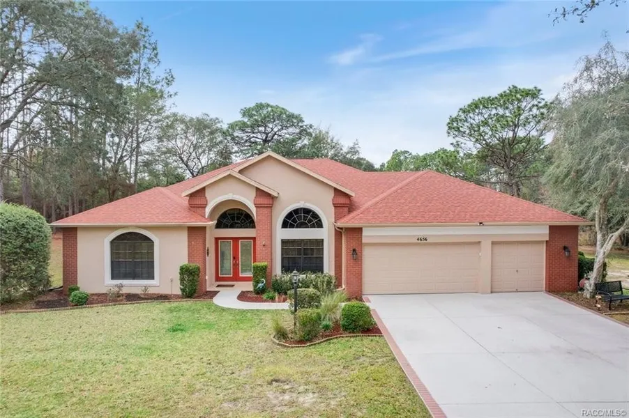 Torn From the Pages of a Magazine! A PICTURE PERFECT, IMPECCABLY MAINTAINED Custom Pool Home that is absolutely move-in ready! This 4BD/3BA/3CG STUNNER sits on a 1.08-acre, corner lot in the Equestrian Community of Pine Ridge Estates. The split floor plan has a seldom seen layout w/ 2 master bedrms w/ensuites, flex rm that can be used as a 4th bedrm or office, formal living/dining rms & separate family rm. Upon entry, enjoy being surrounded by all the natural light that the volume ceilings & large eyebrow transoms have to offer. Crown molding, granite windowsills & plant shelves galore! The cook of the house is in for a treat w/ a Chef’s kitchen w/ granite countertops, island, tiled backsplash & S/S appliances, including built in convection oven, induction cooktop, NEW FRIG & DISHWSHR. Breakfast Bar & Nook are a plus! Nothing better after a good meal than to enjoy warm, cozy nights by the stacked stone gas fireplace w/ Napoleon insert & granite hearth in the family rm. Designer features in all bathrms are all the rave w/ granite tops, vessel sinks, tall faucets & handheld showers. The primary master bath boasts walk in closets & a distinctive His/Hers Roman shower w/ 2 shower heads, wall niches & seats. NEW ROOF, WTR HTR, WSHR & DRYER. Last, but not least, a private oasis of luxury awaits on the screened lanai w/ pavers & kidney shaped, heated pool w/ in floor cleaning sys & NEW FILTER. Something for everyone, including your furry friend w/ an enclosed dog run & artificial grass. NEW Wyze WiFi enabled thermostat, a silent drive garage door opener w/ keypad, 6 zone sprinkler sys, & perimeter flood/motion lights are priceless! FREE 1yr HOME WARRANTY for PEACE OF MIND is offered as a GIFT to the FUTURE BUYER at closing!