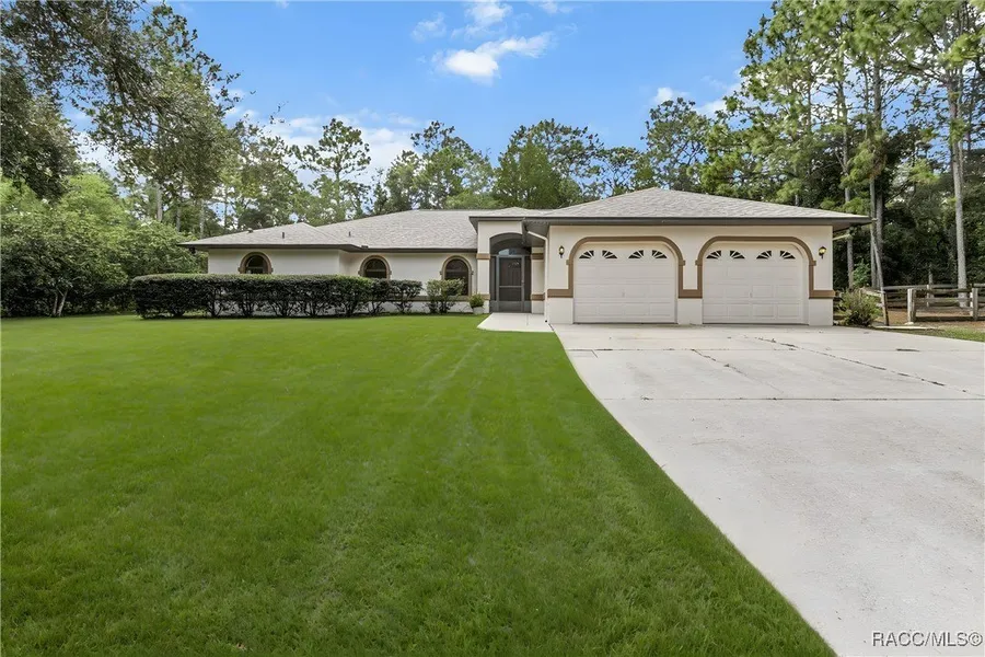 One or more photo(s) has been virtually staged. MOTIVATED SELLER. BRAND NEW ROOF. Fresh exterior and interior paint. This home is set up for solar power. Solar panels are fully paid for and were removed prior to roof replacement, and they can be reinstalled if desired. This expansive 2,200+ sqft home is located in the desirable Pine Ridge subdivision, abundant with recreational facilities and amenities. An equestrian center, equestrian trails, a community center, dog park, playground, tennis and pickleball courts, pavilions and more. Want to fence in your new backyard? You can make application for your new fence with the HOA prior to obtaining ownership. This home features a split-floor plan, two living areas, and two dining areas. With the holidays just around the corner, this home provides ample space for gatherings. Located minutes from shopping and dining, and a short drive to Crystal River, home of the manatees, crystal clear springs, fishing, kayaking, and swimming. Located just under 1.5 hours from the Tampa International Airport and 1.5 hours from the Orlando International Airport.