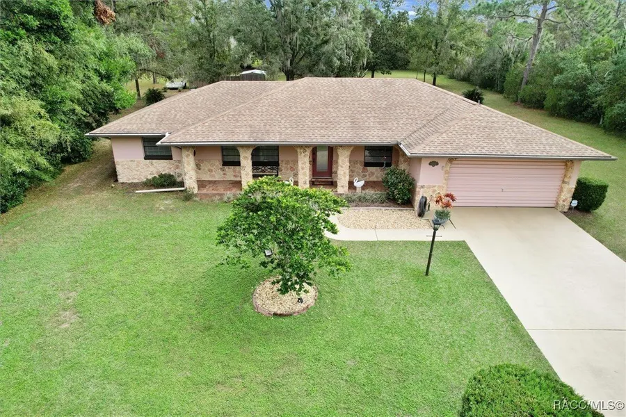 Bring your RVs, boats, golf carts and 4 X 4s. Plenty of room on a 1-acre corner lot with side access in the peaceful community of Oak Forest, this beauty emanates pride of ownership inside & out by the same family through the decades. NO HOA & NO DEED RESTRICTIONS! Upon arrival you know you'll be staying a while. The curb appeal easily wins you over w/ a manicured lawn ornamented w/ fruit trees, azaleas & cacti. And the front porch is absolutely to die for. Elliptical stone arches & columns, stone wall accents & herringbone patterned tile gives you a taste of what awaits. Step inside this immaculate 3BD/2BA, 1897sqft masterpiece & behold a living room that is welcoming w/ hardwood floors. The kitchen boasts MCM wood style cabinets, granite counters, S/S appl & tile backsplash. Floor tile on the diagonal flows seamlessly between kitchen & dining. The family room features a beamed ceiling, wood grain wall paneling and solar tube for additional light. A slider to the lanai expands the family space outdoors. The master features walk-ins w/ organizers & ensuite. Bathrooms display a charm that anyone w/ an eye for flair can appreciate; from speckled tile walls & pastel blue accent borders in the master bath, to the vogue vanity top & swinging swag lamps in the guest bath. Modern conveniences intermingled w/ a Smart, programmable thermostat, Ring doorbell, MyQ Smart Garage Door Opener & HVAC UV Lamps to sanitize the air. Two sheds for storage & even a clothesline for posterity. CONVENIENTLY & CENTRALLY located just 12mi from both Inverness & Brooksville. Only 10min to the public boat ramp for The Tsala Apopka Chain of Lakes to enjoy boating, fishing & spending time outdoors. FREE 1yr HOME WARRANTY for PEACE OF MIND is OFFERED as a GIFT to the BUYER!