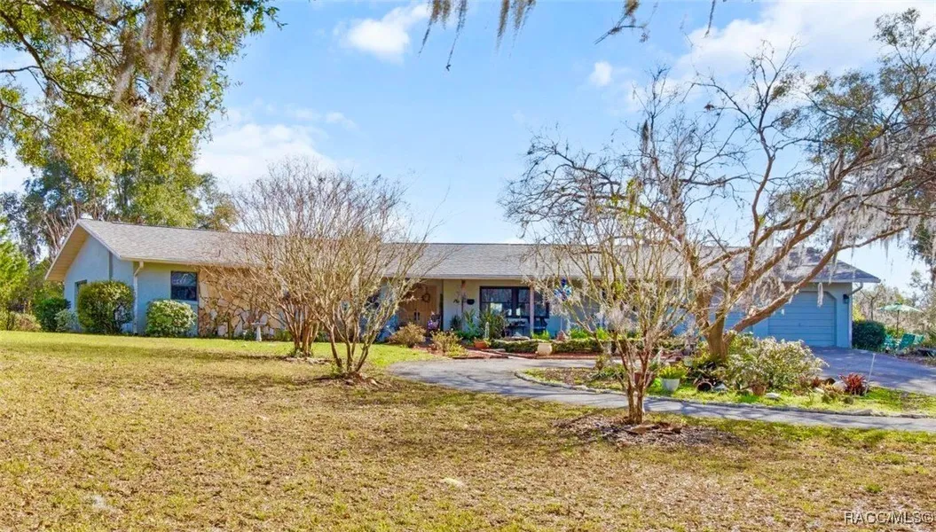 This sprawling home has landscaping that is reminiscent of an english cottage garden with wandering paths of gorgeous carefully and lovingly cultivated blooms around the oversized pool. There's also a veggie garden with carrots, radishes, celery, brussels sprouts, cabbage, and collard greens, next to a sunny patio under a gorgeous old tree. A BRAND NEW ROOF was just completed! The inside is just as cozy as the outdoors, with a semi open floor plan, a large woodburning fireplace, and a well appointed kitchen with granite counters and plenty of storage. The garage has been used as a fully equipped additional dwelling unit with an outside private entrance and bathroom access. Located in Countryside Estates, a community that has no HOA, but is well kept with half acre and acre homesites. The location is amazing, situated a couple of miles from downtown Inverness with amazing entertainment, r...