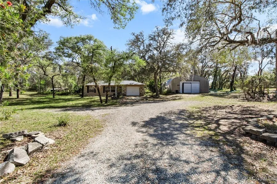 Looking for privacy and a little land to go with it? If so, this 4.57 acre home may be a good fit. Tucked away yet close to all Inverness has to offer. Beautifully well maintained home with a new roof put on Nov. 2024. Home features three bedrooms, two bathrooms with a one car attached garage as well as a 4 car detached metal Quonset Hut. Open and bright floorplan with a newly remolded kitchen. Stainless steel appliances, Quartz countertops, and a huge island overlooking the family room. The Quonset Hut has a 9,000lb car lift which will stay with the sale. Thirty amp service for the RV and no restriction as to what you can do on this property. Bring the animals or store the toys, there is room here for both. There is a large pole barn out back for even more covered storage. Additionally there is a shed with power for even more storage. Located in the heart of Citrus and only minutes to d...