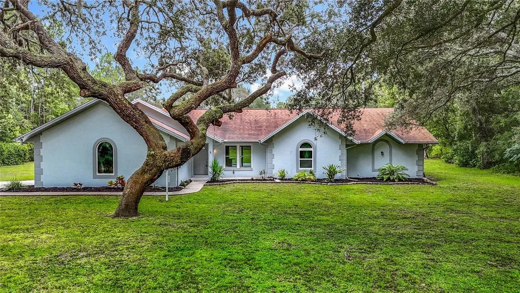 1-Acre Hernando Oasis with Pool, Flexible 4th Room, located in the desirable Citrus Hills community. Welcome to this well-loved 3-bedroom + flex room, 2-bath, 2 car garage + side storage garage pool home nestled on a spacious 1-acre lot in Hernando, featuring a versatile 4th room perfect as an office, gym, or studio. This beautifully updated home offers the perfect blend of comfort, functionality, and modern elegance. With an expansive layout and a host of recent upgrades, it stands ready to welcome you home. As you approach, you will be greeted with a sprawling front yard, adorned with majestic oak trees, that perfectly surround the driveway. The heart of this home is its updated kitchen that boasts sleek countertops, modern soft closed cabinetry, subway tile backsplash, huge center island, built-in coffee bar with water filler faucet, and state-of-the-art appliances with pot filler fa...